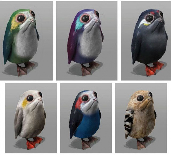 Забавные существа с большими глазами и истеричным криком, порги, на самом деле появились не из-за желания Дисней, сделать создание игрушки которого распродавались бы как горячие пирожки, а из-за необходимости. Дело в том, что на острове Скеллиг-Майкл, где снимали скрывающегося Люка Скайуокера очень много крайне любопытных птиц - тупиков. Они постоянно лезли в кадр. Конечно, их можно было затереть на постпродакшене, однако вместо этого было решено прибегнуть к более креативному решению - заменить в кадре надоедливых пернатых на нарисованных милых созданий, которые более вписываются в инопланетную фауну. Примечательный факт: на ранних этапах планировалось сделать поргов разноцветными