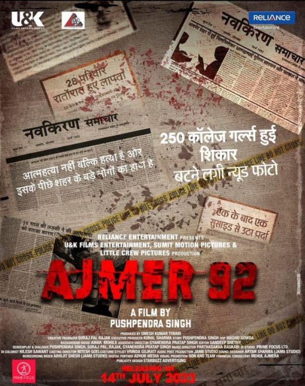 Основанный на реальных событиях, фильм "Аджмер 92" рассказывает историю о тяжелом положении целых 250 девочек, которые были пойманы в ловушку, подвергались сексуальной эксплуатации и шантажу в течение многих лет со стороны смотрителей Аджмер Дарга, включая многих влиятельных людей в этом районе и лидеров Индийского национального конгресса в городе Аджмер в Раджастане в 1992 году.